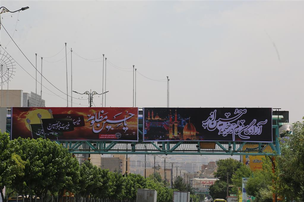 همزمان با فرا رسیدن ماه محرم الحرام و ایام عزاداری سید و سالار شهیدان اباعبدالله الحسین(ع) و در راستای حفظ و ترویج فرهنگ دینی، ماه محرم و تکریم شعائر اسلامی به عموم شهروندان، واحد روابط عمومی شهرداری با نصب پرچم های مشکی ، ریسه و بنر در معابر، بلوارهای سطح شهر، فضاهای تبلیغاتی و بر روی عرشه پل های هوایی های سرتاسر شهر را سیاه پوش کرد.